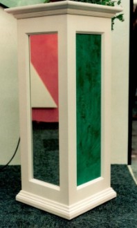 Stucco-Veneziano auf einer Designerlampe, im Hintergrund diverse Techniken | | Stucco-Veneziano Marmorino auf einer Designer-Wandlampe | | Stucco-Veneziano Marmorino im Säulenausschnitt |