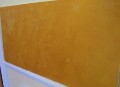 Gold und Kupfer in Verbindung mit Stucco-Veneziano ergibt ein besonders edles Ambiente. All diese Techniken und Materialien wurden von mir selbst ausprobiert und zusammengestellt. Der Reiz an diesen Techniken liegt an der Verbindung von Kalk und metallischen Effekten. Man könnte diese Verbindung als einen "mit Metall veredelter Stein" bezeichnen. Das Faszinierende an diesen Techniken sind vor allem die verschiedenen optischen Effekte bei nur einer Gestaltung, nur durch Veränderung meiner Sichtweise. Das bedeutet, dass je nach Betrachtungswinkel und Beleuchtung vollkommen verschieden Effekte entstehen. Die unten angeführten Bilder zeigen dies sehr deutlich, weil je Technik immer nur eine einzige Tafel verschieden beleuchtet und aus unterschiedlichen Positionen fotografiert wurde. Bei den jeweils 4 Bildern je Technik handelt es sich also um immer die gleiche Tafel.
